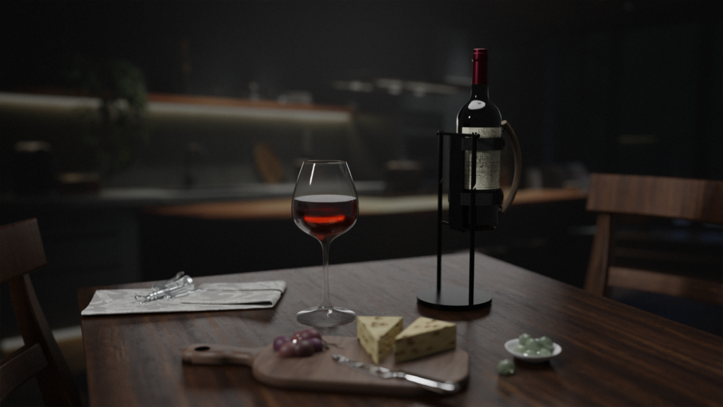 The aluminium is anodised for a dark colour und to provide protection against corrosion. Thanks to the narrow struts, Bibo blends stylishly and unobtrusively into the surroundings of the table, so that it no longer looks like an accessory, but like a natural part of the table setting.