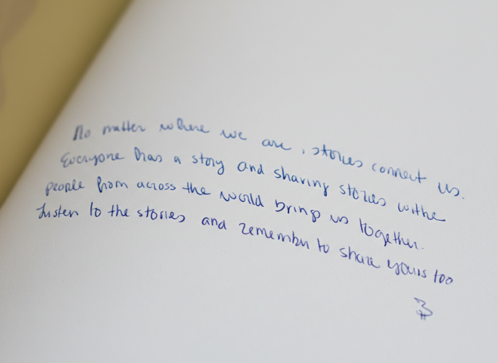 There are many white spaces and large images throughout the design in order to give the stories space to take effect and to be able to delve deeper with the images. In addition, the images and texts correspond with each other, so that bridges are also created here in terms of design. By emphasising quotes, words of wisdom, handwritten messages and interspersed pages within the chapters in which the eight people are introduced, different narrative levels are opened up within the booklet.
